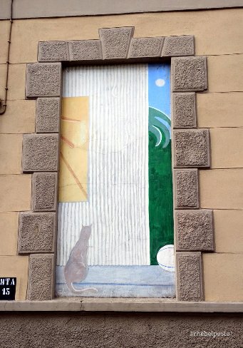 Nel mio girovagare ho poi incontrato questo murale realizzato sulla finestra “murata” di un edificio in Via Locana. Ci sono altri murales che sfruttano la cornice di una finestra, ma questo di Di Lernia mi ha colpito particolarmente.