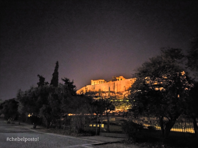 L’ingresso all’Acropoli è possibile solo dall’alba al tramonto, ma la passeggiata in notturna è davvero suggestiva ed è possibile ammirare, attraverso le cancellate, il Teatro di Dionisio anch’esso illuminato.