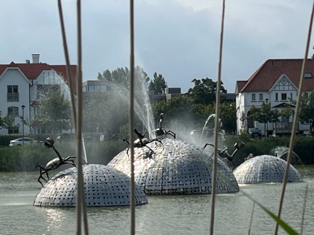 Sul laghetto di Knokke, ad esempio, è visibile l’installazione dei Granchi galleggianti, il Wuivende Krabben: è costituita da tre isole galleggianti realizzate in acciaio inox specchiato. Su ciascuna isola si muovono sei granchi rossi, scolpiti in acciaio inossidabile, che “salutano” il vento con le loro chele aperte.